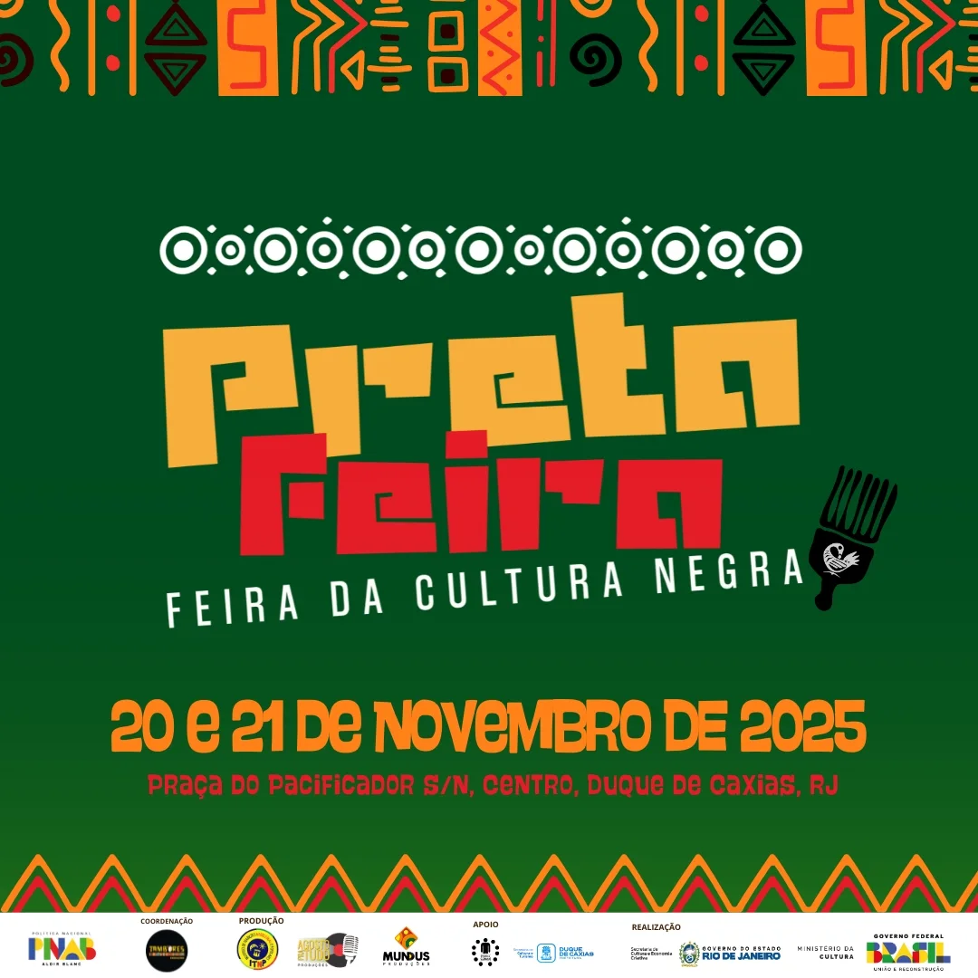 Programada para os dias 20 e 21 de novembro, a Preta Feira chega à Praça do Pacificador, bem no centro de Duque de Caxias, com apresentações de danças, desfile de moda afro, variadas manifestações musicais, barracas de artesanato, ofertas de gastronomia vasta por artistas e empreendedores locais. O projeto tem a realização da Tambores de Iguaçu, Coordenação do Instituto de Tradições Nordestinas Populares e Produção Mundus Produções, Agosto pra Tudo Produções e Ms Mohr Produções.